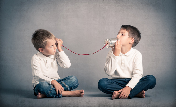 Leaning to communicate is probably the most important skill we have to learn. However, it’s not that interesting to watch, so very often movies will have different nationalities, or even different species quickly leaning English in order to get on with the story! By the way kids you have to pull that string tight in order for Tin Can phones to work! (Credit: Secret Entourage)
