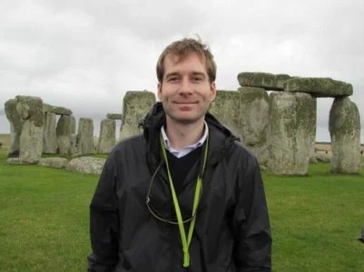 Author of ‘Lost in Time’ A. G. Riddle posing in front of a well-known bit of the past. (Credit: A-Thrill-A-Week)