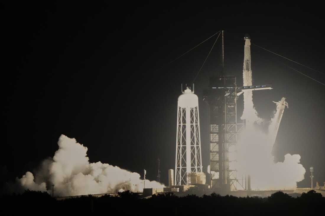 A SpaceX Falcon 9 rocket with a crew of four aboard a Dragon Spacecraft lifts off from pad 39A at the Kennedy Space Center in Cape Canaveral, Fla., Wednesday, June 25, 2025. (AP Photo/John Raoux)