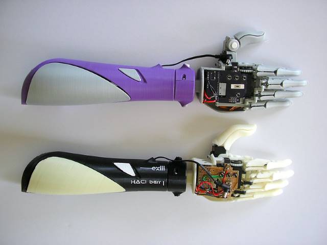 Two examples of bionic arms that can be connected to, or separated from a user. Current models are mostly of this type. (Credit: The Borgen Project)