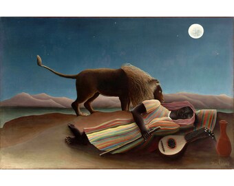 The Sleeping Gypsy by Henri Rousseau. Obviously, we are quite defenseless while we are asleep, but every creature does it. Why? (Credit: Etsy)