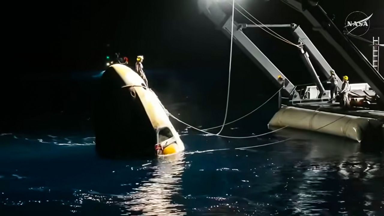 Despite the change in schedule, and the medical emergency the deorbit and splashdown of Crew 11 went off without a hitch. The capsule was safely recovered in the Pacific Ocean. (Credit: Spectrum News 13)